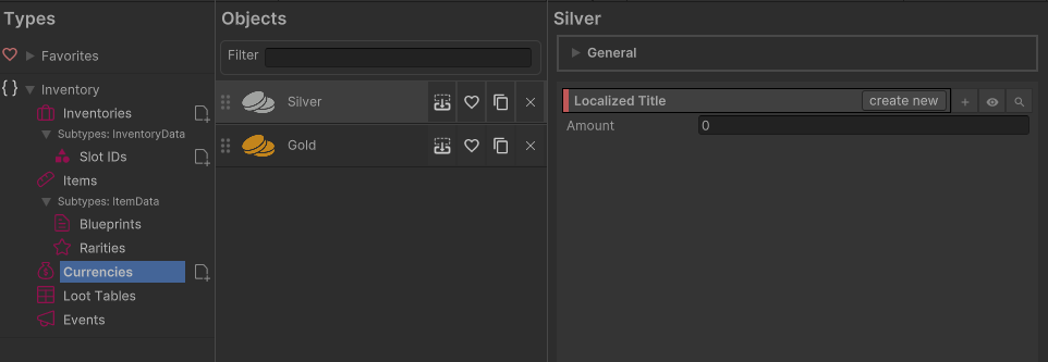 Here you can define coins which can then be assigned to each items to set their values. The value field is set to 0 by default unless you want to set a certain amount for the player from the start.